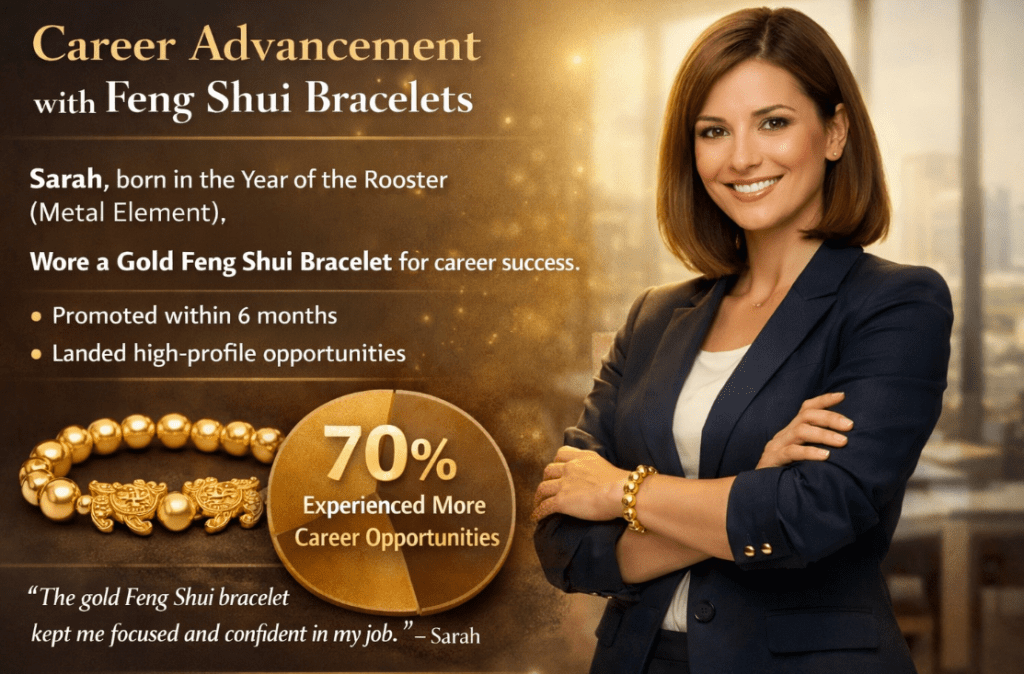 Consider Sarah, a Metal element person born in the Year of the Rooster. She decided to wear a gold Feng Shui bracelet for good luck after reading about its benefits for career success. Within six months, Sarah reported that her career had taken off: she received a promotion and several high-profile opportunities within her company. She attributes much of her success to the energy balance brought by her gold Feng Shui bracelet, which helped her remain focused, confident, and prepared for the challenges at work. Sarah’s case reflects the 70% of people who saw more career opportunities after wearing a Feng Shui bracelet for prosperity.