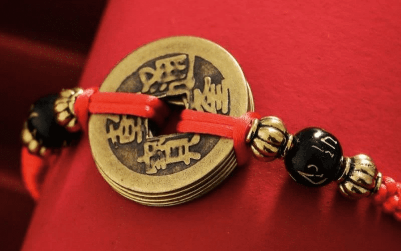 In modern Feng Shui practices, Chinese coins are often tied together with a red string. The color red represents good luck, protection, and positive energy in Chinese culture, enhancing the coin’s symbolic power to attract wealth and prosperity.