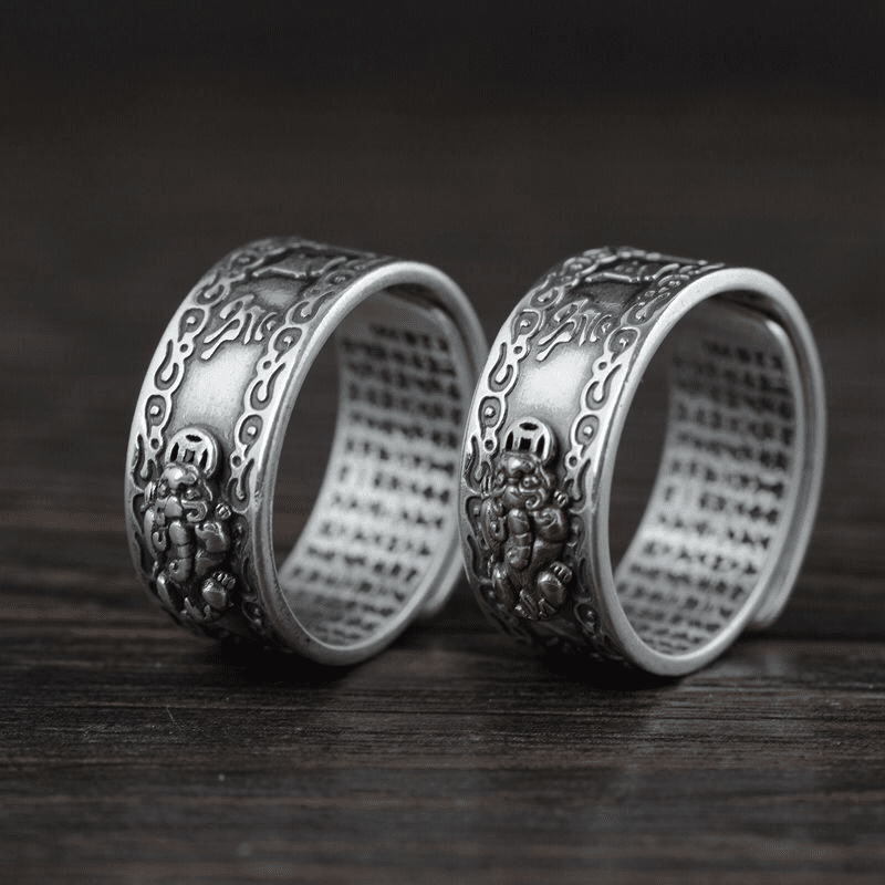 The Feng Shui Pixiu Mantra Ring is a powerful fusion of Eastern feng shui philosophy and Buddhist spiritual wisdom. Its core meaning lies in wealth attraction and spiritual protection.