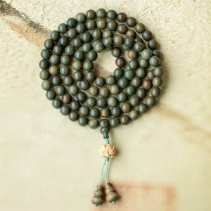 Green Sandalwood 108 Mala Beads with Lotus & Gourd Accents – Spiritual Balance