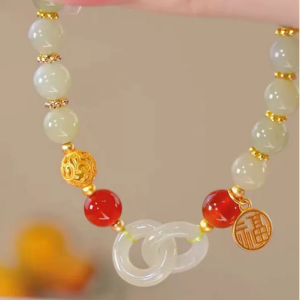 Eternal Harmony Bracelet – Hetian Jade & Red Agate Fortune Link