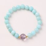This bracelet set celebrates the natural harmony between amethyst and amazonite. One design features soothing purple amethyst beads highlighted by a single amazonite focal bead, while the other reverses the palette with calming blue-green amazonite beads accented by an amethyst focal. Both bracelets are finished with subtle golden spacers, adding a touch of refinement. Together, they embody balance, tranquility & mindful clarity, perfect for daily wear or thoughtful gifting.