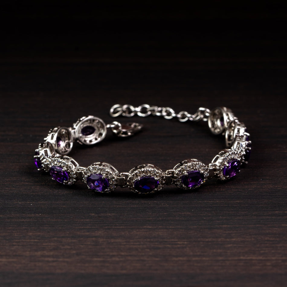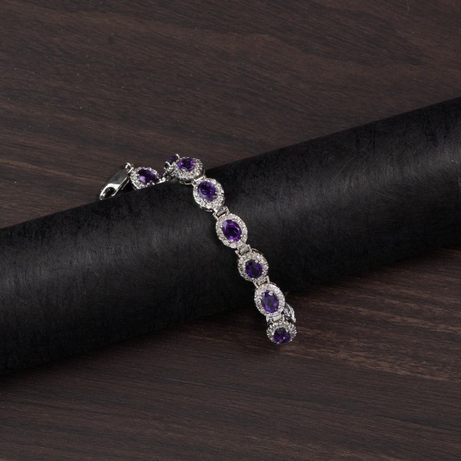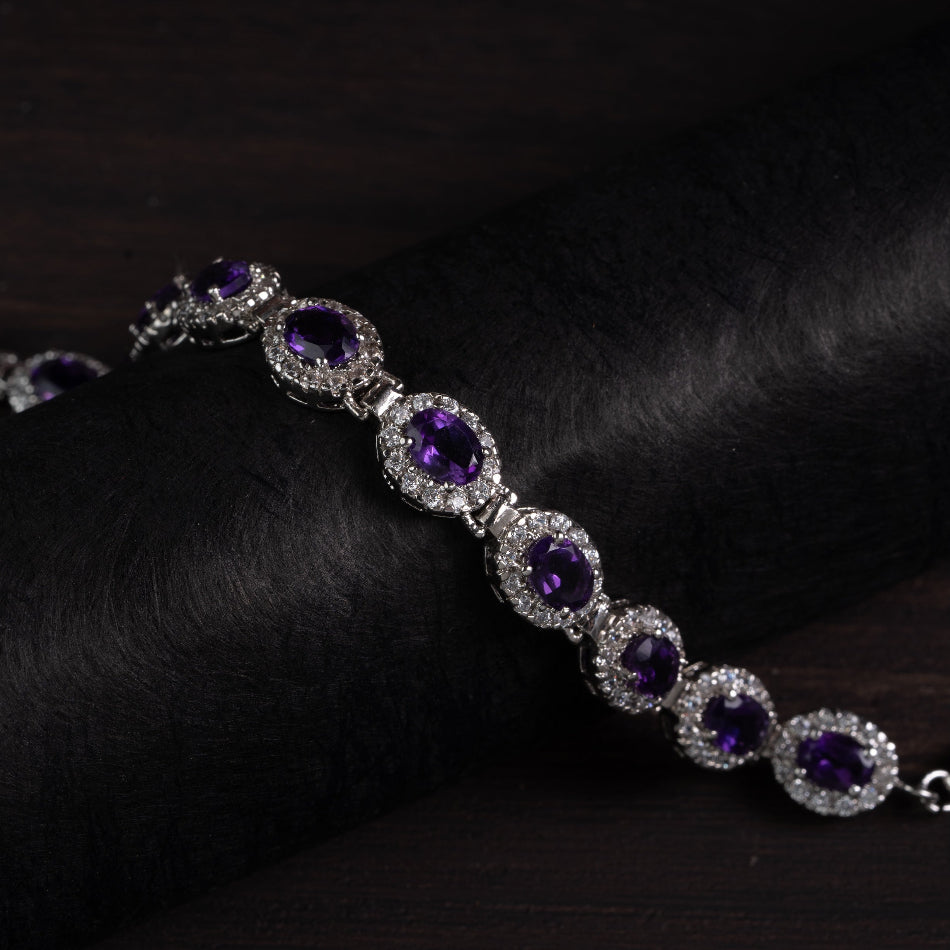 Amethyst Halo Silver Bracelet – Clarity & Calm