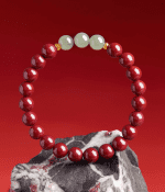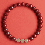 This bracelet is composed of natural cinnabar (Zijin Sand) beads paired with three luminous jade beads at the center. Cinnabar has long symbolized protection, prosperity & vitality, while jade represents harmony, purity & balance. The 6mm round bead design makes it both refined and comfortable for everyday wear—an elegant talisman that bridges beauty with meaning.