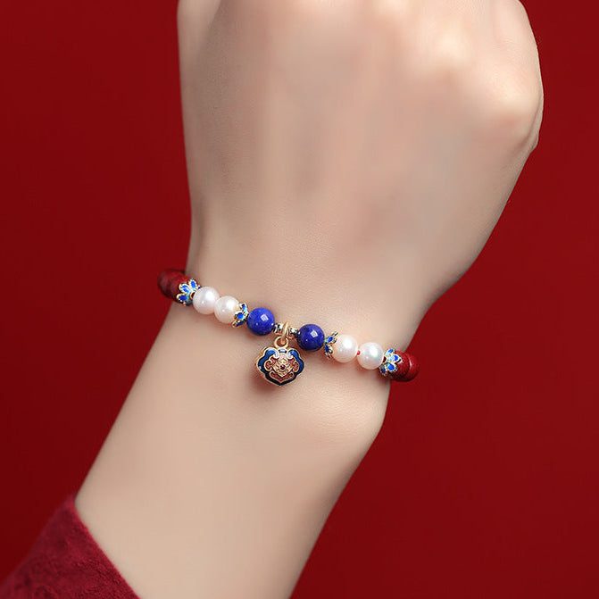 The Cinnabar & Pearl Longevity Lock Bracelet blends natural cinnabar’s deep red vitality with the soft luster of freshwater pearls and an enamel “Longevity Lock” charm — a symbol of peace, blessings, and enduring harmony. This elegant piece carries both protection and grace, embodying the timeless balance of beauty and spiritual strength.