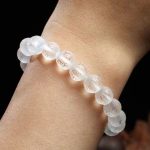 A serene strand of natural clear quartz finished in a soft frosted sheen and engraved with mantra characters on every bead. The matte surface diffuses light so each sphere glows from within—cool at first touch, then gently warming to your skin. Hand-strung on durable elastic, it’s a quiet talisman you can wear from morning practice to evening wind-down.