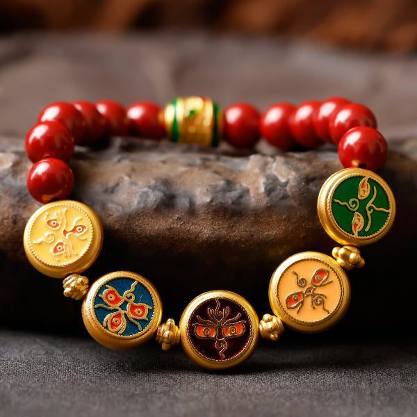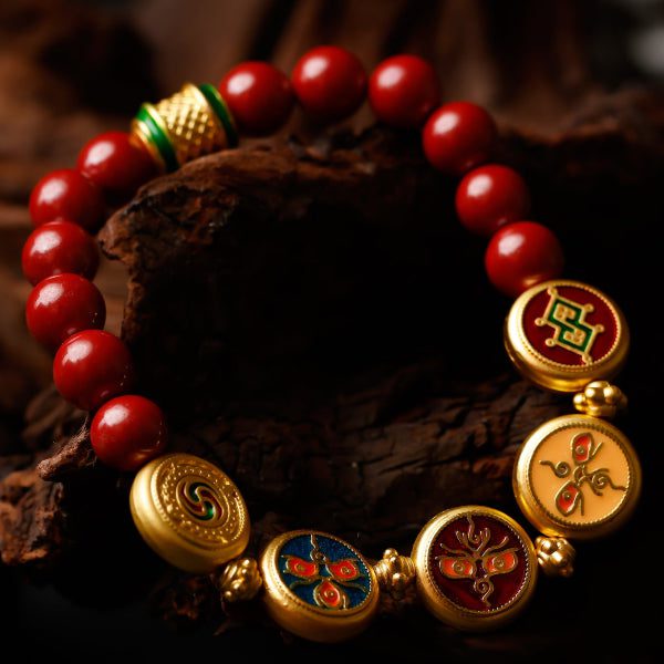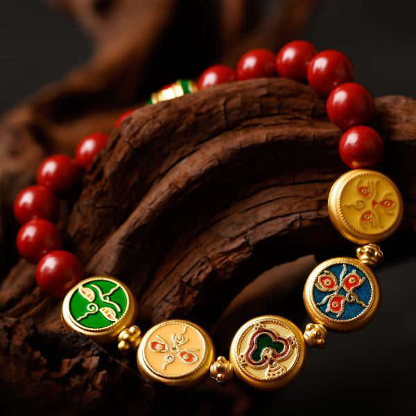 Five Elements Cinnabar Wealth Bracelet – Tibetan Prosperity Thangka Beads