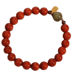 A radiant bracelet of deep red agate, centered with a single smooth jade bead and a golden “Fortune” charm. The union of fiery agate and calm jade embodies balance between passion and peace — strength in heart, serenity in spirit. Each piece is a quiet talisman of protection and good fortune, carrying the ancient wish for blessings in every step forward.