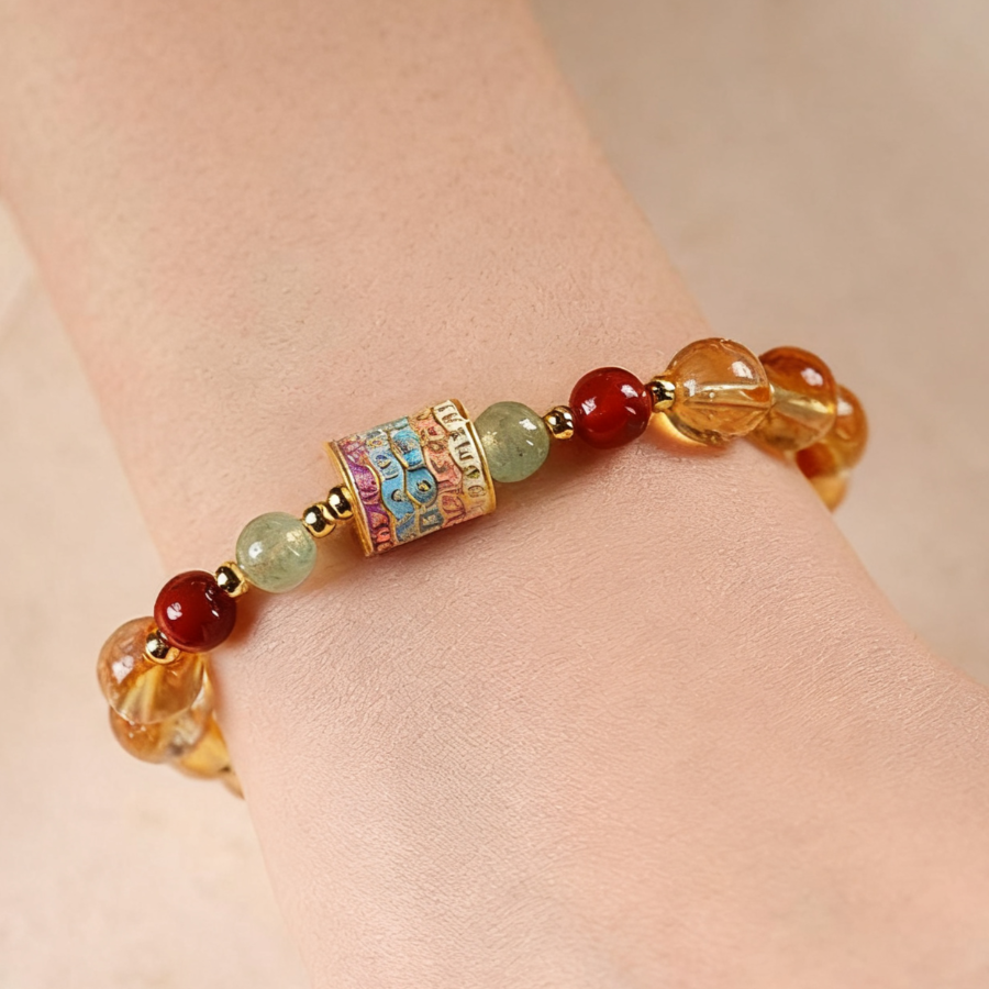 Golden Citrine Bracelet with Five-Color Prayer Wheel – Prosperity & Protection