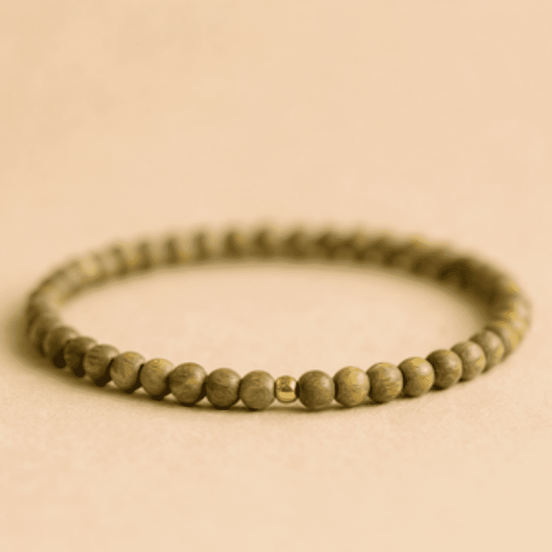 • Materials: Natural green sandalwood beads & gold-tone accent bead & durable elastic cord