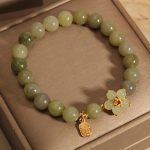 This bracelet harmonizes Earth (Jade) and Metal (Gold) energies — symbolizing stability, fortune, and calm joy.
