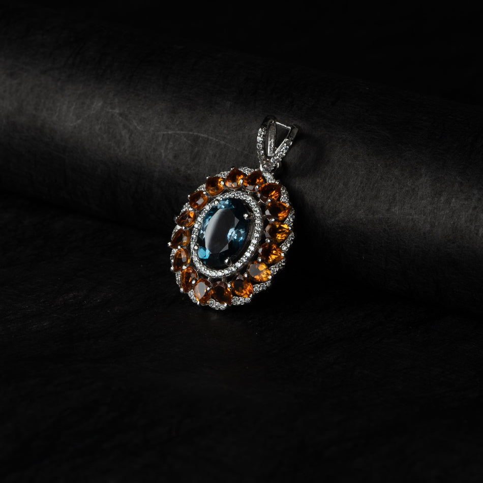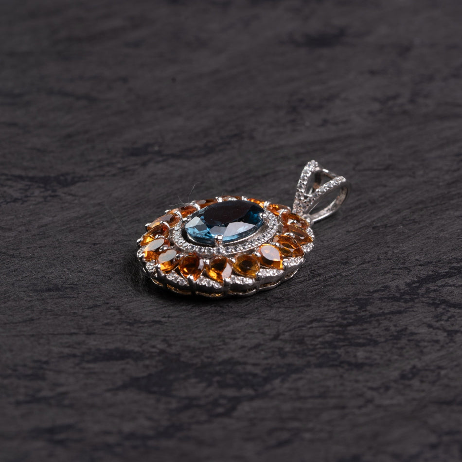 London Blue Topaz & Citrine Sunburst Silver Pendant – Clarity & Joy