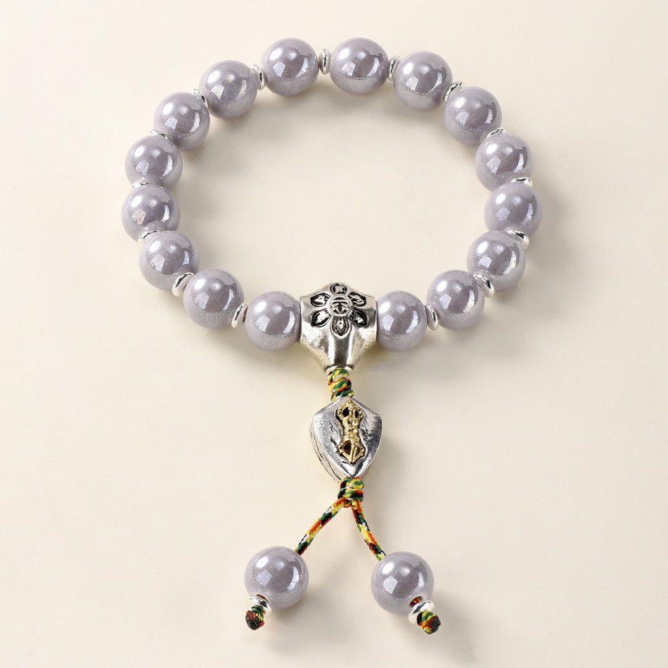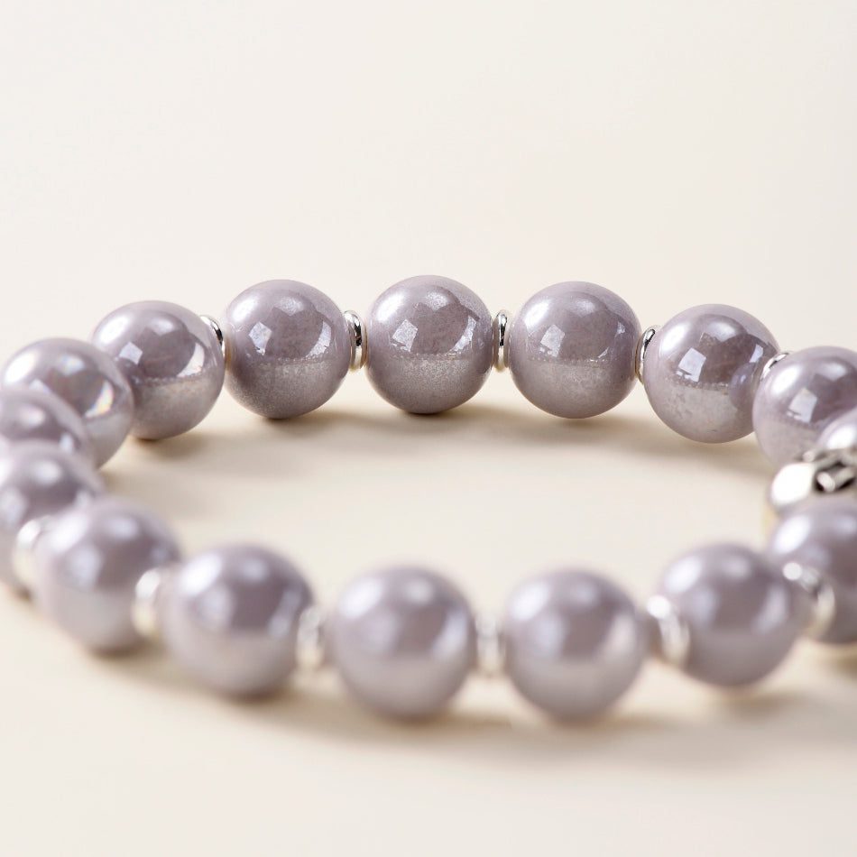 Pearlescent Ceramic Bead Bracelet (Grey, 10 mm) – Career & Focus