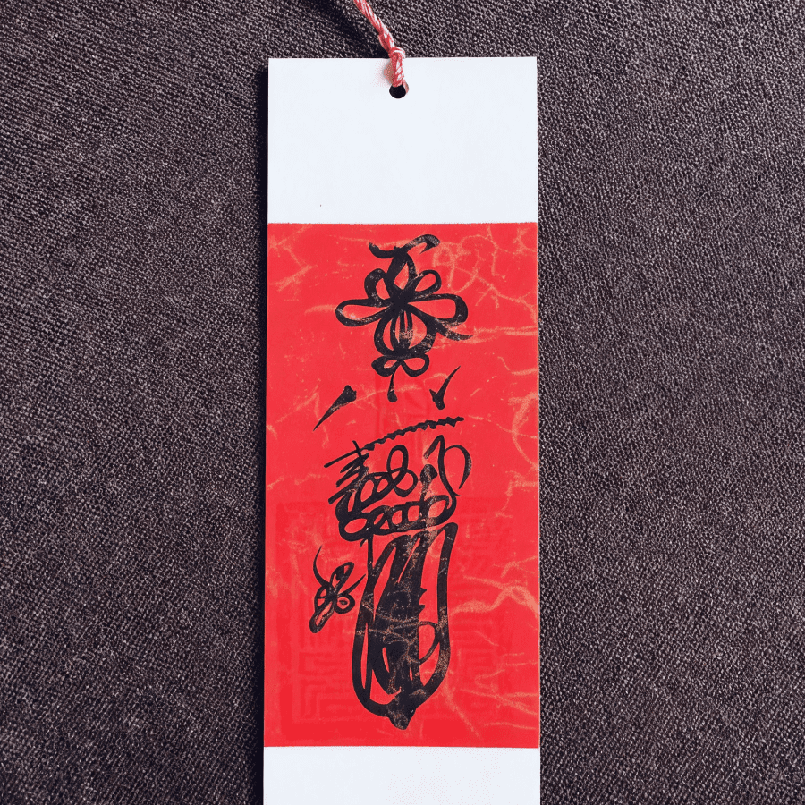 These handcrafted bookmarks feature traditional talisman inscriptions in black and gold on a vibrant red background, symbolizing prosperity, blessings & protection. Each design is mounted on textured paper with a hanging cord, blending spiritual symbolism with practical use. Perfect as a meaningful gift, a personal charm for books, or a decorative piece for daily inspiration.