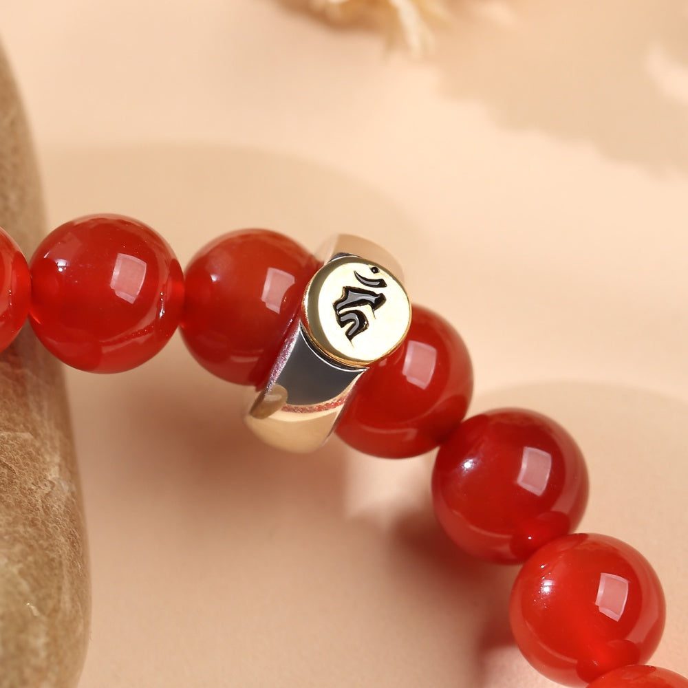 The “Red Agate Buddhist Guardian Deities Bracelet” is used to call forth the energy of our divine protectors! Etched in Sterling Silver, wear the symbol of your guardian deity to bless you with many good things!