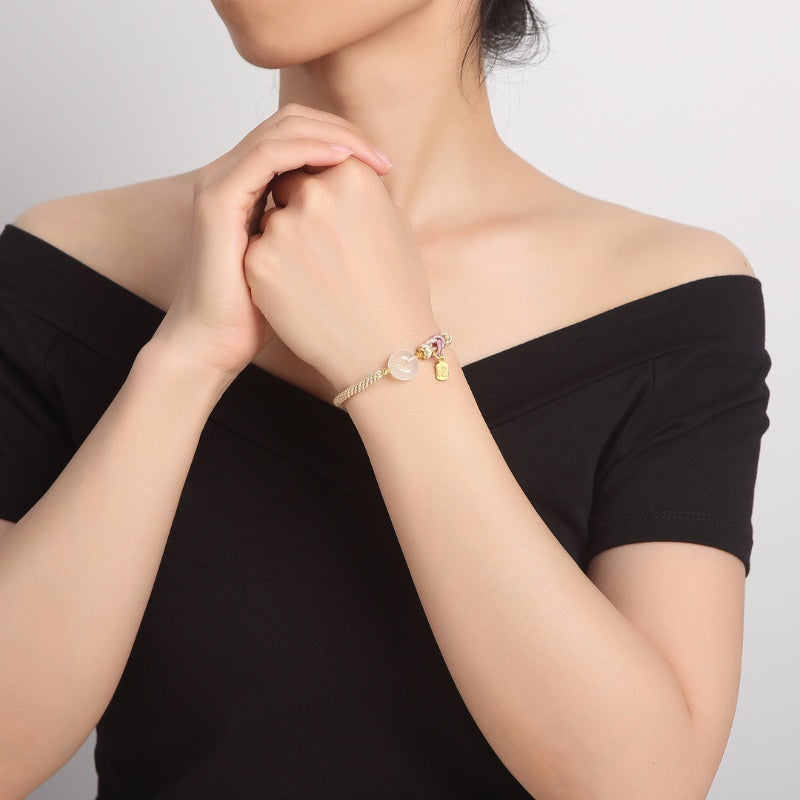 In Chinese tradition, the “Fu” charm (福) represents good fortune and happiness. Giving this bracelet is like saying, “My love is your luck,” offering your partner a meaningful reminder that your love carries the power of protection, joy, and abundance.