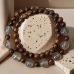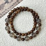 Natural wood’s warm grain meets cool, translucent gray accents in a quiet, New Chinese Style stack. The strand is hand-strung to create a clean double-layer look on the wrist, balancing earthy texture with a soft, light-catching glow. An elastic interior makes it simple to slip on, comfortable to wear, and effortless to pair with linen, tees, or tailored layers.