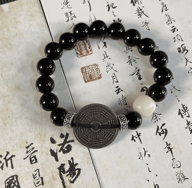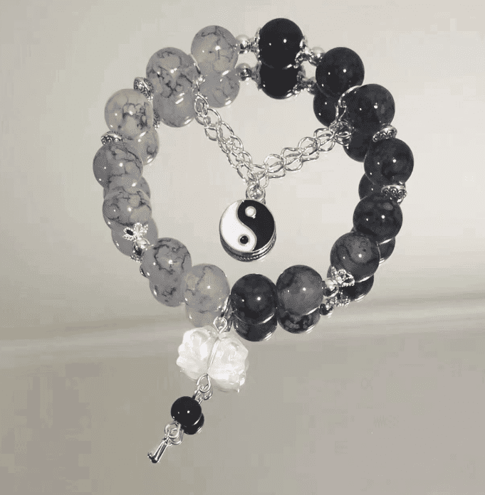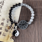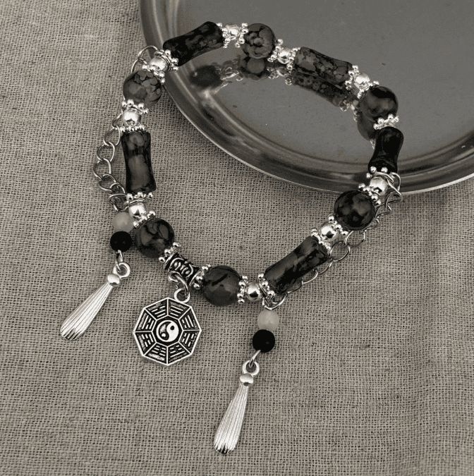 Inspired by the ancient philosophy of harmony, the Yin–Yang Balance Bracelet unites deep black obsidian with soft white agate. Centered by a Tai Chi pendant and accented with natural tassels, it embodies the eternal balance between light and shadow, motion and stillness. This bracelet is a meditation on unity — grounding strength and gentle wisdom woven into one timeless talisman.