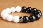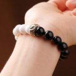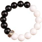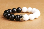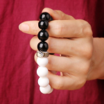 • Materials: Natural black obsidian, natural white shell, 925 sterling silver mantra bead, elastic cord